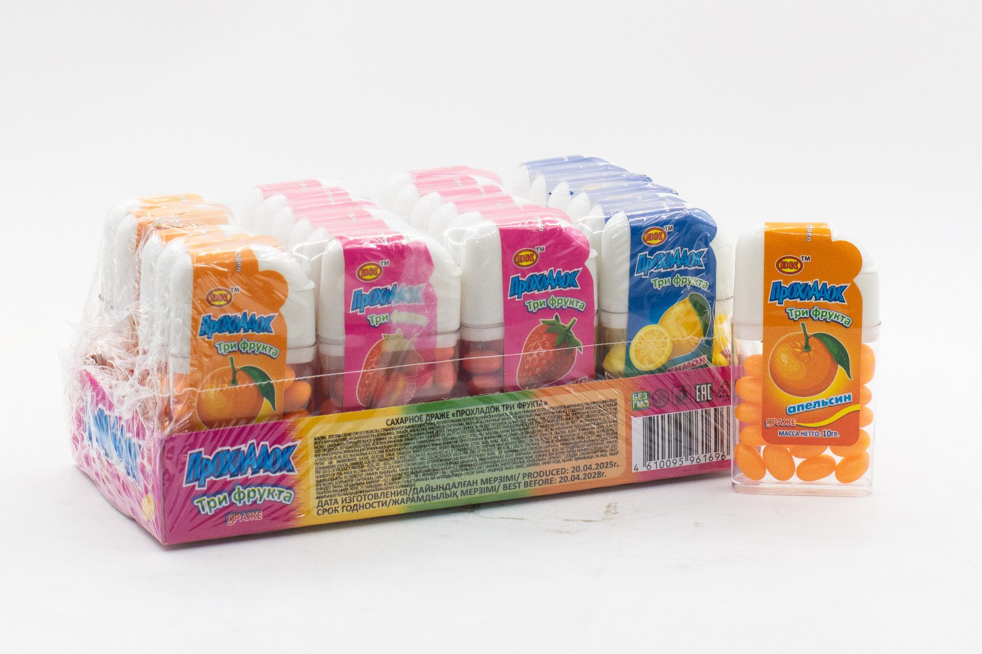 Сахарное драже Прохладок Три фрукта (Китай) 10г0,00 руб. за штуку (в упак. 24 шт.) |